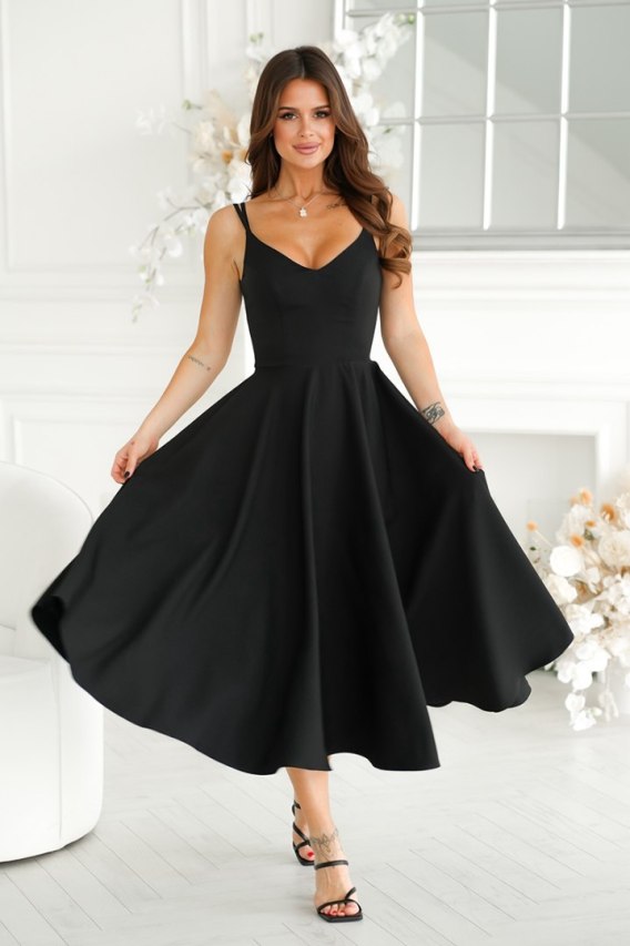244-06 Sukienka Midi Na Ramiączkach - czarny