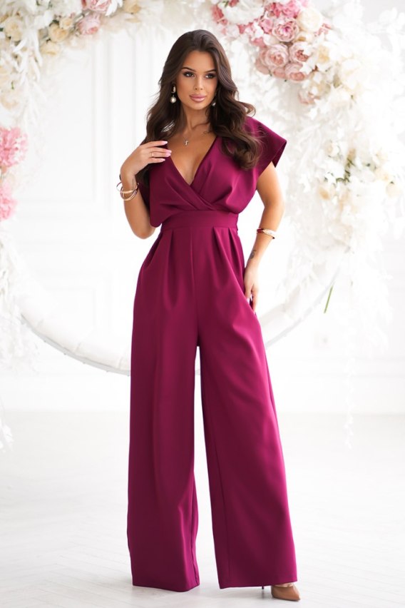 Stylowy kombinezon z odciętym pasem i szerokimi nogawkami. Rękawy rozkloszowane opadające na ramiona. Idealnie skrojone nogawki wydłużają sylwetkę, a szeroki pas wyszczupla talię. Dostępny w pięknych kolorach.