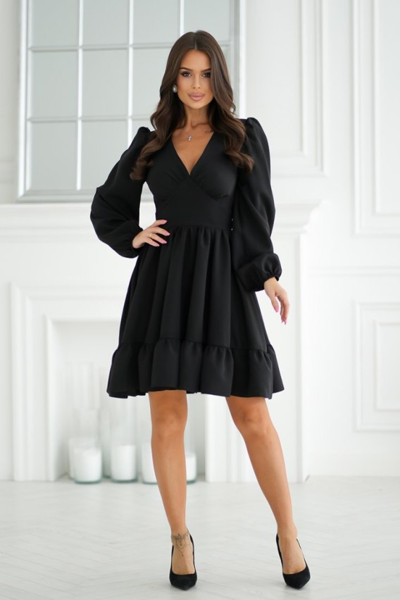 322-06 Krótka Sukienka Z Bufkami - czarny