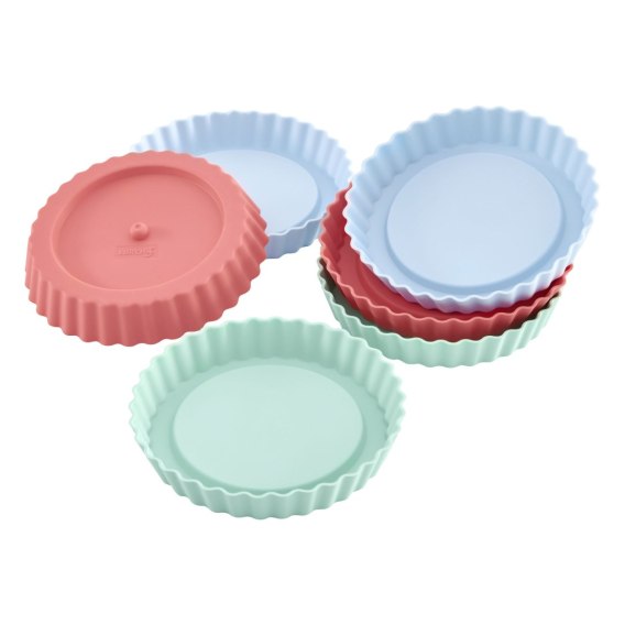 6 okrągłych mini-foremek z silikonu w pastelowych kolorach.