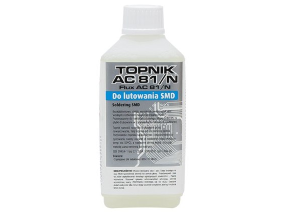 Bezkalafoniowy, ciekły, wysokoaktywny topnik typu 2.1.2/3 A jest wodnym roztworem związkw organicznych. Przeznaczony do nakładania ciekłego stopu Sn60/Pb na płytki drukowane w cynowarkach rolkowych (rolltinner).