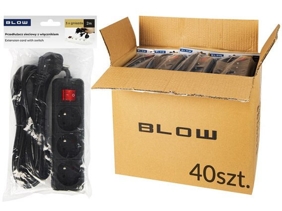 98-572# Przedłużacz sieciowy pr-370wsp 3-gniazda z uziemieniem+wyłącznik 2m czarny 3x1,5mm opakowanie