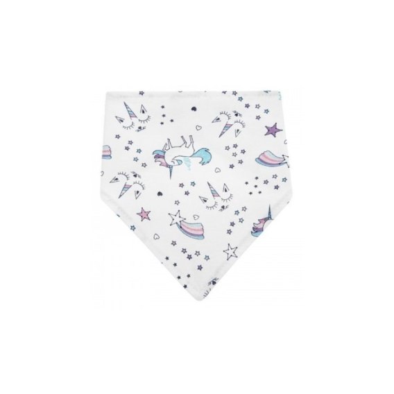 Apaszka dziecięca, dwuwarstwowa, która poprzez swój kształt i sposób wykonania spełnia 2 funkcje: można ją traktować zarówno jako śliniaczek - osłania bowiem ubranie dziecka podczas karmienia; a także jako apaszka dla dziecka, osłaniająca szyję i stanowiąca element ubioru. Posiada regulowane zapięcie na napy, co daje możliwość skrócenia lub wydłużenia długości, dzięki czemu może być używana zarówno przez niemowlaka, jak i przedszkolaka. Produkt jest wykonany z dwóch warstw materiału - 100% bawełna, wierzchnia miękka warstwa ozdobiona jest kolorowymi dziecięcymi nadrukami.