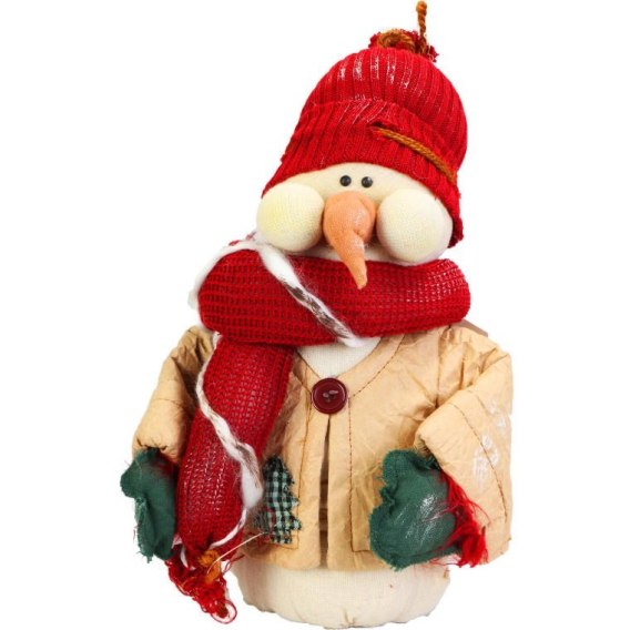 Bałwan wykonany z naturalnych materiałów w kolorze czerwonym 33 cm