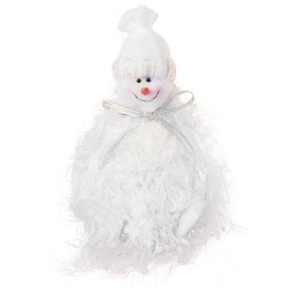 Bałwanek Świąteczny z Włóczki 25 cm w Białym Futrzanym Ubranku ze Srebrnymi Nitkami