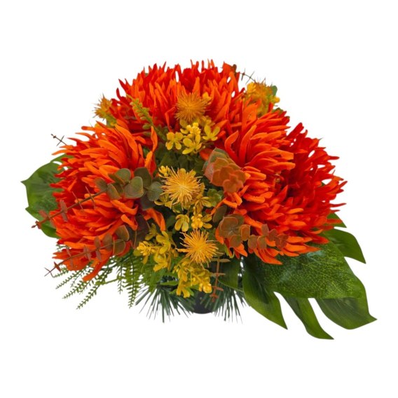 💚Stroik cechuje się unikalną kompozycją sztucznych kwiatów. Starannie dobrane kwiaty są niezwykle realistyczne, dodając wiązance autentyczności i podkreślając jej uroczysty charakter.