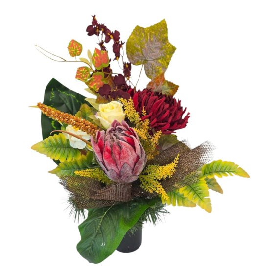 💚Stroik cechuje się unikalną kompozycją sztucznych kwiatów. Starannie dobrane kwiaty są niezwykle realistyczne, dodając wiązance autentyczności i podkreślając jej uroczysty charakter💚