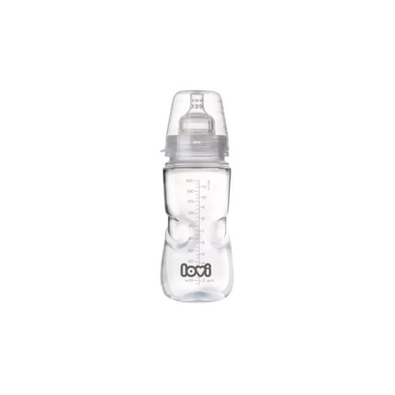 Butelka LOVI jest bezpieczna dla dziecka karmionego piersią, ponieważ nie zaburza odruchu ssania. Została zaprojektowana i przebadana pod nadzorem medycznym. Posiada unikalny dynamiczny smoczek do karmienia z cienką wydłużającą się końcówką, twardą, profilowaną podstawą i systemem odpowietrzania super vent. UWAGA: Marka LOVI rekomenduje karmienie piersią jako najzdrowszą formę podawania pokarmu. Zaleca rozpoczęcie podawania pokarmu w formie alternatywnej, wyłącznie po konsultacji z lekarzem, położną lub farmaceutą, gdy karmienie piersią jest niemożliwe lub niewystarczające.