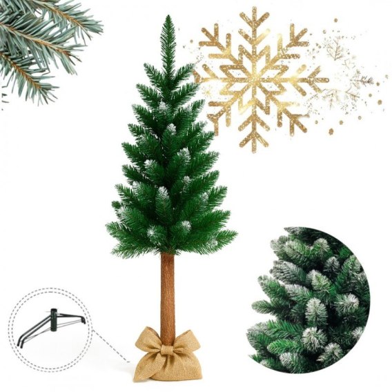 CHOINKA NA PNIU Z SOSNY, SZTUCZNA jak żywa ŚWIERK 120 CM GĘSTA OŚNIEŻONA CHO07