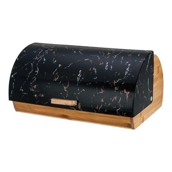 Ten designerski chlebak to połączenie naturalnego bambusa z nowoczesnym akcentem - stalową pokrywą z efektem marmuru. Dzięki przemyślanej konstrukcji skutecznie chroni pieczywo przed wysychaniem i zabrudzeniami, a jego elegancki wygląd sprawia, że staje się ozdobą każdej kuchni. To idealne rozwiązanie dla osób, które szukają pojemnika praktycznego, ale też stylowego.