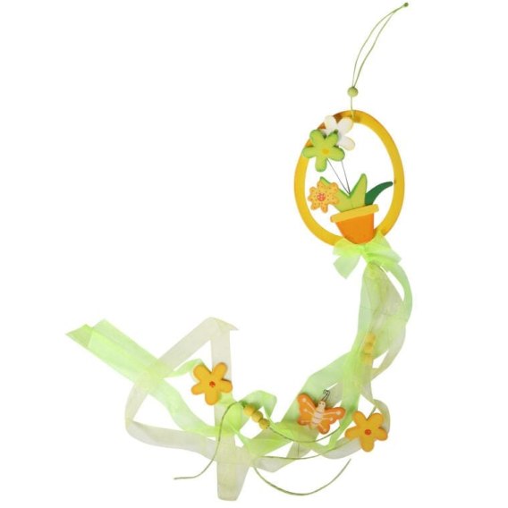 DREWNIANA ZAWIESZKA WIELKANOCNA JAJKO Z KWIATKAMI W KOLORZE ŻÓŁTO-ZIELONYM, 70CM