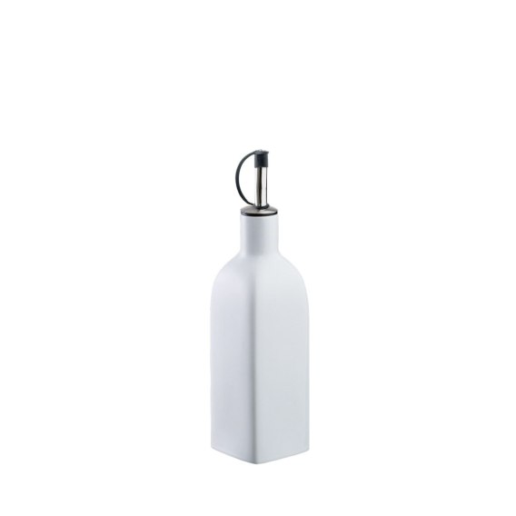 * biała, ceramiczna butelka o kwadratowym przekroju sprawdzi się doskonale do dozowania odpowiednich ilości oliwy, octu lub sałatkowego dressingu