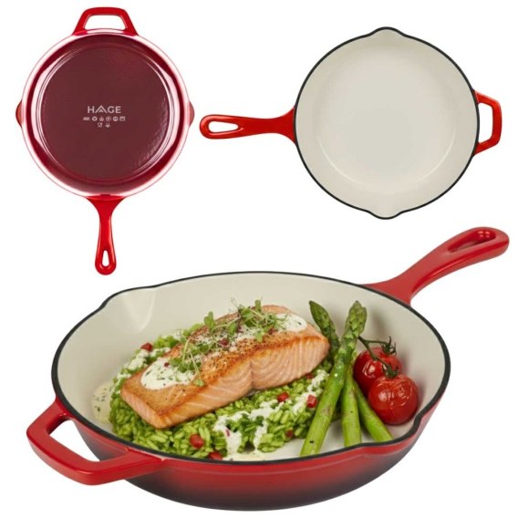 EMALIOWANA PATELNIA ŻELIWNA 26cm HAGE CZERWONA
