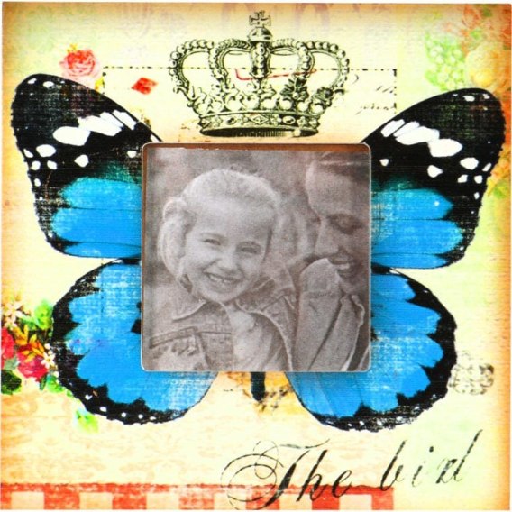 Elegancka Stojąca Ramka na Zdjęcie z Motywem Motyla, Kolor Kremowy, Rozmiar 14,5x14,5 cm