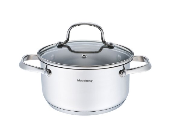 Garnek 2.5L firmy KLAUSBERG z pokrywą szklaną wykonany z najwyższej jakości stali nierdzewnej 18/10.