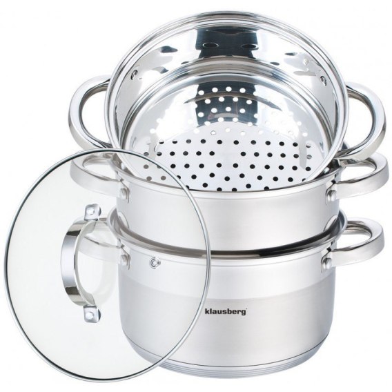 Komplet garnków do gotowania na parze wykonany jest z wysokiej jakości stali nierdzewnej. Wykorzystana stal składa się z najlepszej jakości stopu powszechnie stosowanego w światowej klasy produktach, co gwarantuje jej wysoką odporność na korozję oraz bardzo dobrą wytrzymałość. Zastosowany materiał umożliwia szybkie podgrzanie potraw i przez dłuższy czas utrzymuje ciepło. Produkt przystosowany do gotowania na kuchenkach indukcyjnych, gazowych, elektrycznych, ceramicznych i halogenowych. Można go bezpiecznie myć w zmywarkach.