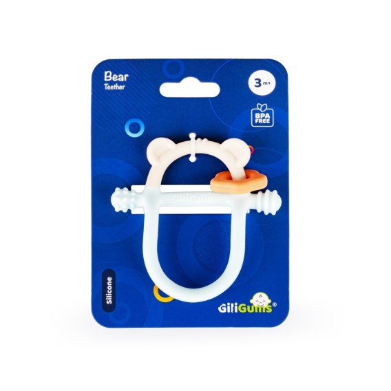 Z pastelowym misiem ząbkowanie to żadne wyzwanie! Gryzaczek posiada wypustki, które podczas gryzienia będą delikatnie masować obolałe dziąsła malucha. Kształt gryzaczka został zaprojektowany z myślą o najmłodszych. Znajdziemy tu miejsce na rączkę dzidziusia oraz poprzeczny element, za który bobas może chwytać zabawkę. Gryzak wykonany został z silikonu, dzięki czemu bez trudu go wyczyścisz.