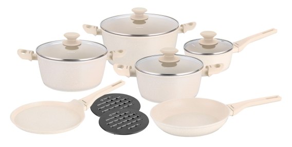 12-elementowy zestaw garnków i patelni z marmurkową powłoką nieprzywierającą marki KLAUSBERG.