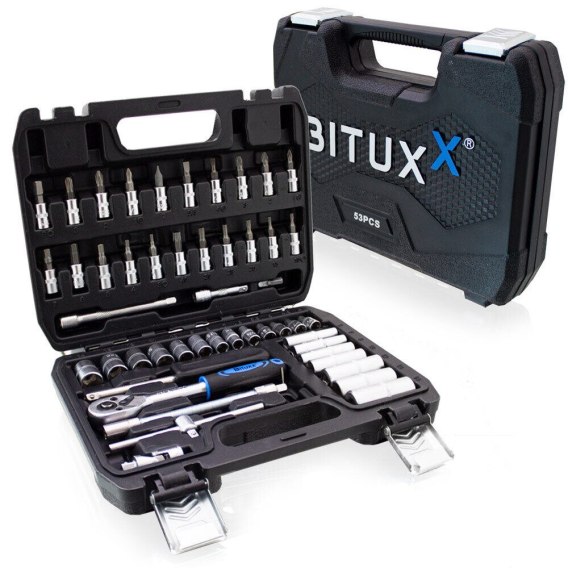 Solidny zestaw narzędzi 45 elementów  zawiera bity, nasadki, klucz zapadkowy oraz dodatkowe akcesoria które zostały wykonane z wytrzymałej, narzędziowej stali chromowo-wanadowej.  Idealny zarówno do drobnych napraw jaki i również do profesjonalnych warsztatów. Zestaw umożliwia pracę wymagającą bardzo dużych obciążeń i precyzji, pozwala wykonywać wiele czynności serwisowych związanych z odkręcaniem i przykręcaniem połączeń gwintowych o różnych rozmiarach nominalnych.Grzechotka 72 zęby (skok roboczy 5 stopni).