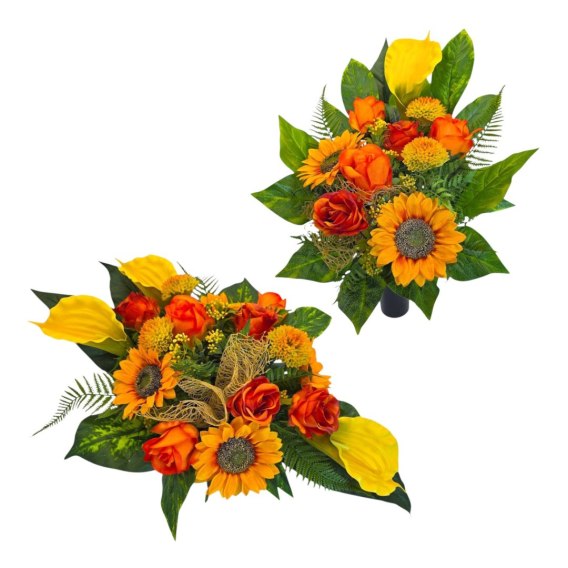 Komplet stroiki na cmentarz grób bukiet donica słoneczniki