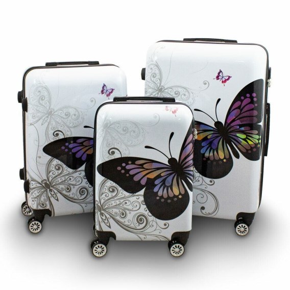 Komplet walizek 3 szt BERWIN mocne walizki poliwęglanowe Motyle