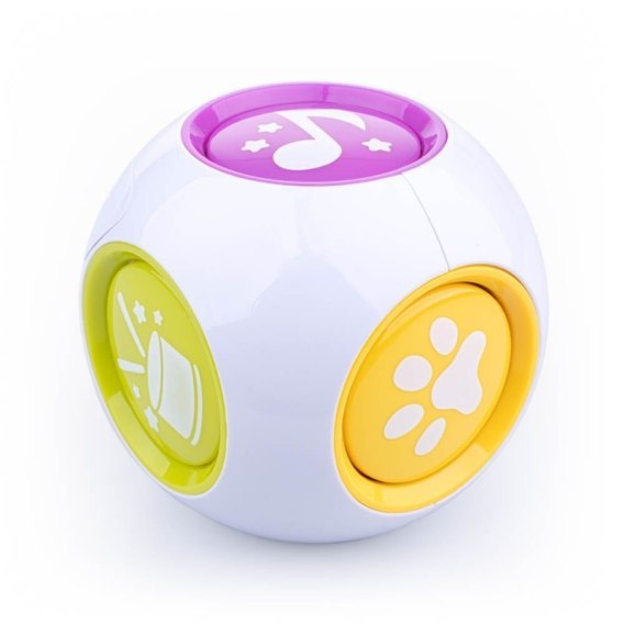 Edukacyjna, dotykowa kostka pełna dźwięków i kolorów zabawi na 6 różnych sposobów! Kryje ona w sobie dźwięki instrumentów muzycznych, odgłosy zwierząt, słowa w języku polskim: nazwy kolorów, literek i cyferek oraz wesołe melodie. Poszczególne dźwięki uruchamia się poprzez dotykanie kolorowych ścianek, na których znajdują się symbole odpowiadające trybom zabawy. Kostka posiada regulację głośności i wyłącznik dźwięku.