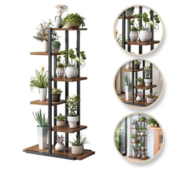 Stojak, kwietnik na roślinyJeśli uwielbiasz rośliny ten regał jest dla Ciebie!Twoje rośliny w końcu będą pięknie wyeksponowane. Dzięki 6 półkom pomieści sporę ilość doniczek. Stwórz swoją własną kwietną kompozycję!Perfekcyjnie sprawdzi się na balkonie, tarasie, ogródku jak i wewnątrz domu.Specyfikacja:- 6 półek.- Rama z metalu.- Blaty z płyt laminowanych.- Maksymalne obciążenie jednej półki: 2 kg.- Produkt do samodzielnego montażu.Wymiary po złożeniu:113 x 60 x 20cmWymiary pudełka:119 x 25 x 7 cmWaga:6kg