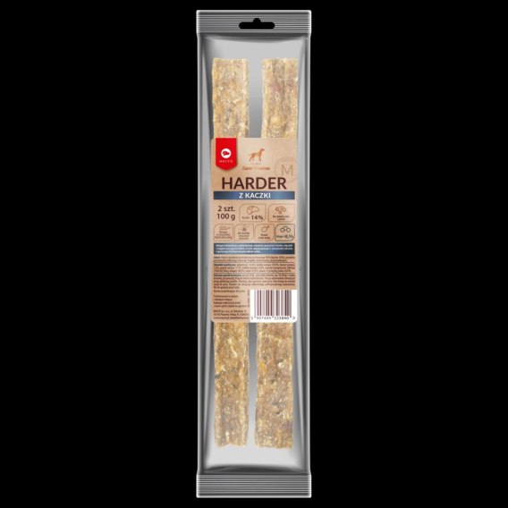 MACED Harder z Kaczki to twardy gryzak, który skutecznie pomaga w walce z kamieniem nazębnym. Produkt nie zawiera zbóż, cukrów ani sztucznych aromatów, co czyni go bezpiecznym i naturalnym przysmakiem dla psów.