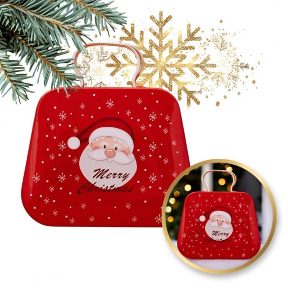Metalowy pojemnik na cukierki Idealny akcent do podkreślenia świątecznego klimatu. Kolor: Czerwony