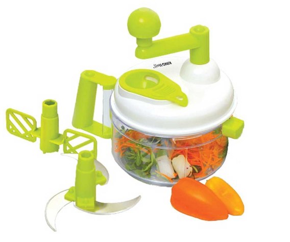 - Zestaw wyposażony jest w: 1 ostrze ze stali nierdzewnej do siekania, 1 szt ubijak do jaj, 1 szt misa plastikowa, oddzielacz białka jajecznego, pokrywa z korbą ramienną i uchwytem