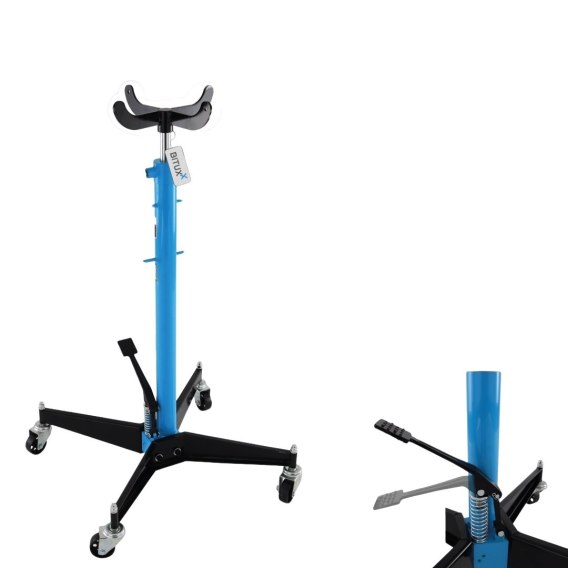 Profesjonalny podnośnik hydrauliczny BITUXX do skrzyń biegów, silników i innych elementów montowanych pod pojazdem.