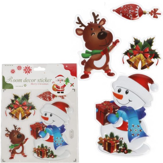 NAKLEJKI ŚWIĄTECZNE NA OKNO 3D DEKORACJA OZDOBA BAŁWAN+ RENIFER