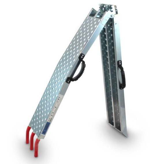 Rampa przeładunkowa, do szybkiego rozładowania i załadowania mniejszych pojazdów ,wykonana z mocnej stali, zabezpieczona przed korozją. Maksymalne obciążenie to aż 400kg na najazd. Powierzchnia antypoślizgowa zapewnia świetną stabilność.Dzięki temu , że rampa jest lekka, waży tylko 8,6kg , i posiada uchwyt można ją łatwo transportować .