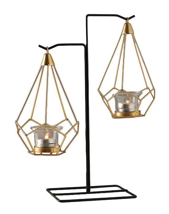 Świecznik wiszący z geometrycznymi kloszami - złoto-czarny