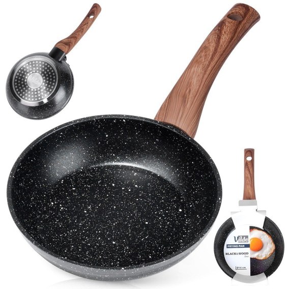 Patelnia granitowa nieprzywierająca indukcja NON-STICK BLACK&WOOD 16 cm VILDE 199058
