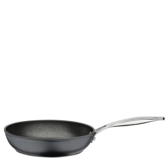 * patelnia pokryta trójwarstwową powłoką nieprzywierającą *Intense Pro* odporną na wysokie temperatury i zarysowania - mogą być na niej używane stalowe narzędzia kuchenne bez ryzyka uszkodzenia powłoki