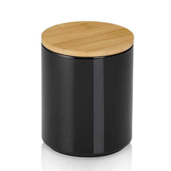 Pojemnik kuchenny, ceramika/bambus, 1,0 l, śred. 12 x 15 cm, czarny