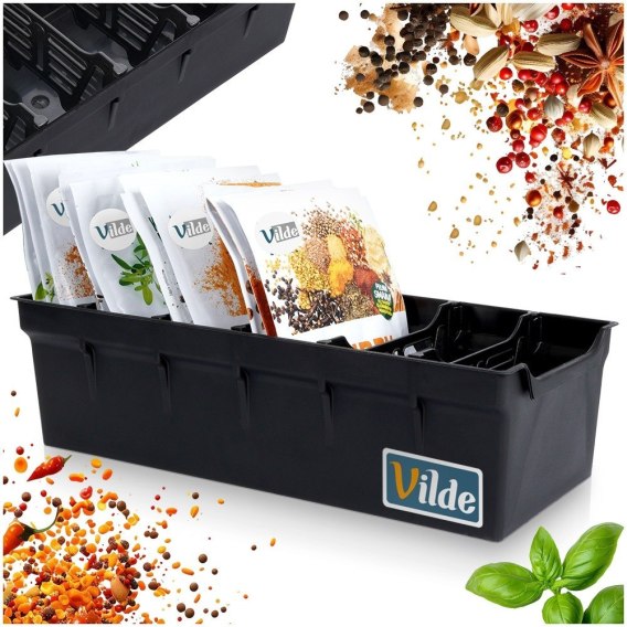 - IDEALNY NA PRZYPRAWY - Przeznaczony do przechowywania torebek z przyprawami. Posiada wewnątrz 5 separatorów, które pozwolą na oddzielenie torebek i pogrupowanie ich w związku z ich przeznaczeniem.