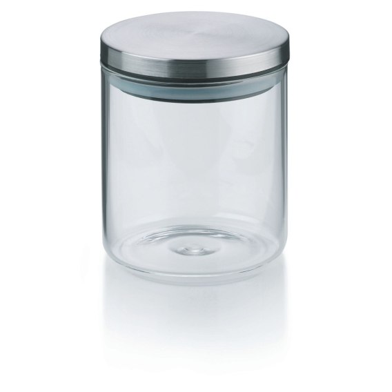 * szklany pojemnik został uzupełniony o szczelnie przylegającą, stalową pokrywkę