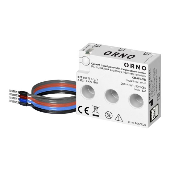 Przekładnik prądowy trójfazowy z rejestracją pomiaru, max. 440V/63A, Tuya Smart Wi-Fi