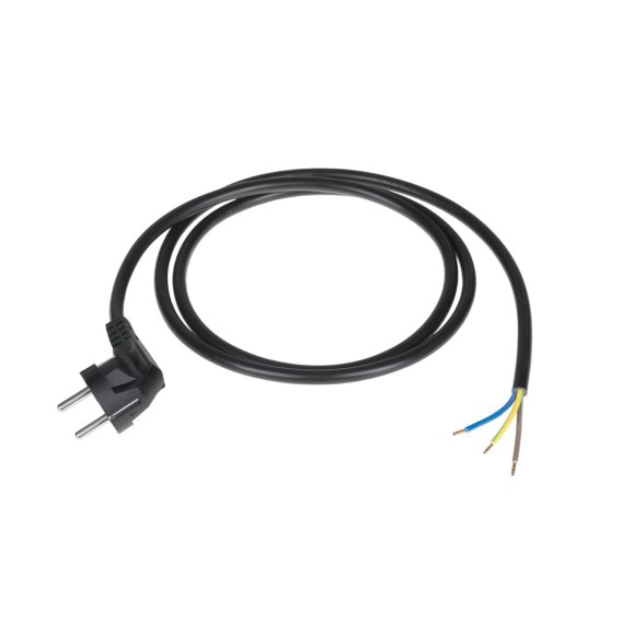 Przewód zasilający 3x1,5mm czarny 3m z wtyczką kątową