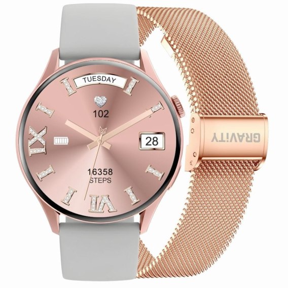 SMARTWATCH DAMSKI GRAVITY GT11-8 - AMOLED, DODATKOWY PASEK (sg044h)