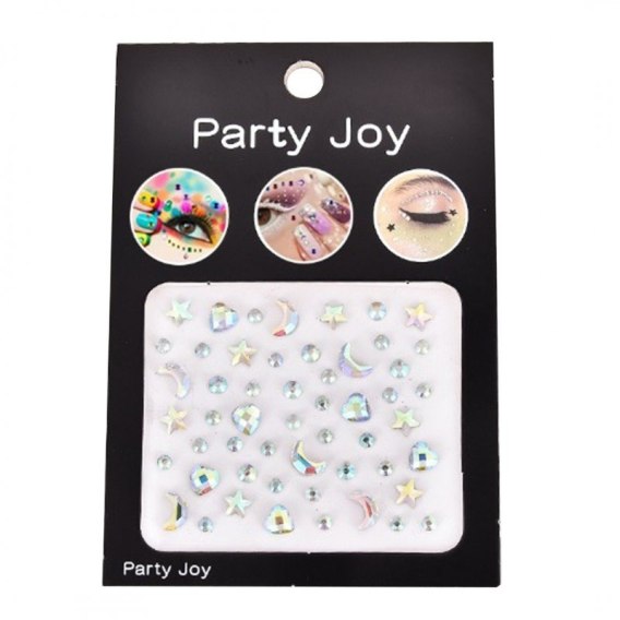 Dekoracyjna biżuteria do ciała i twarzy z kryształkami Mieniące się kryształki i perełki to niezwykle kobiecy dodatek do wielu tematycznych stylizacji. Można je przykleić zarówno na twarz, jak i ciało. Zestaw składa składa się z: