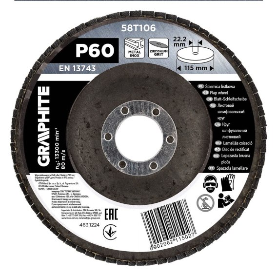 Ściernica listkowa cyrkonowa 115 x 22.2 mm, P60