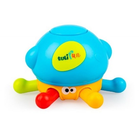 Kompaktowa ośmiornica wydaje wesołe dźwięki, które zabawią malucha. Na czubku jej głowy znajduje się ukryta piszczałka. Ramiona ośmiornicy można odginać, której to czynności towarzyszy zabawne terkotanie. Terkocze też sama głowa ośmiornicy , podczas przekręcania jej dookoła własnej osi. Kształt zabawki dostosowany jest do małych rączek, co czyni ośmiorniczkę wymarzonym towarzyszem pierwszych, sensorycznych zabaw, zarówno w domu, jak i w podróży.