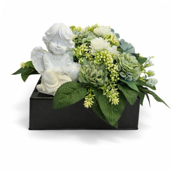 Stroik na cmentarz kompozycja kwiatowa na grób dziecka z aniołkiem