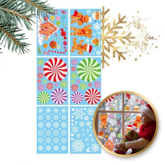 Świąteczne naklejki kolorowe na okno 6 Arkuszy 20 x 30 cm NKD14
