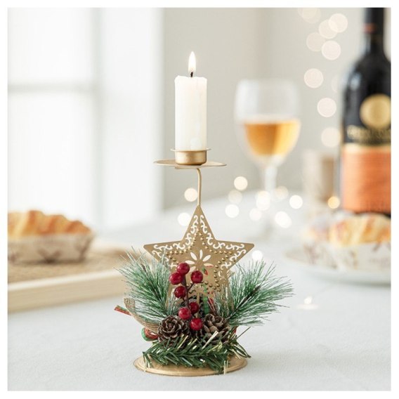 Świecznik Boże Narodzenie złoty ozdobny na stół Glamour 15 cm KSN122 Materiał: