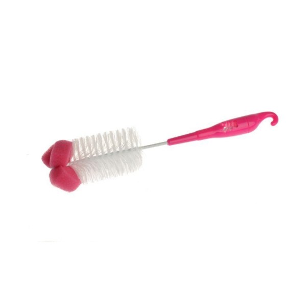 Zestaw specjalnie zaprojektowanych szczotek (duża i mała) do dokładnego mycia butelek i smoczków. Pozwalają na precyzyjne usuwanie zabrudzeń w trudno dostępnych miejscach. Większa szczotka wyposażona jest dodatkowo w gąbkę, ułatwiającą dokładniejsze umycie wnętrza butelki. Wykonane z bezpiecznych materiałów.