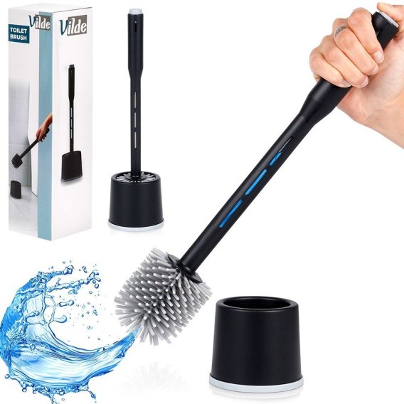 Szczotka do czyszczenia WC toalety silikonowa ze stojakiem dozownikiem płynu czarna VILDE 568062